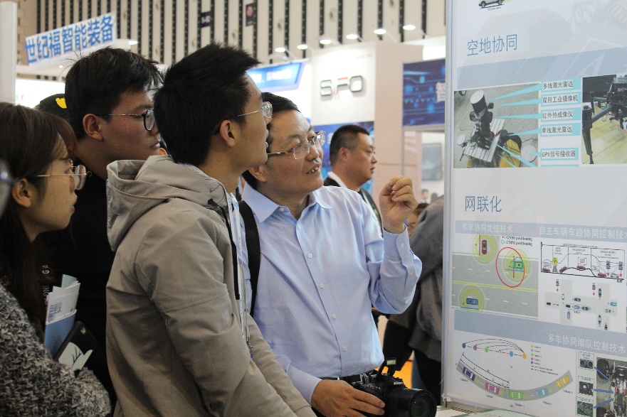 展览期间,各界人士对智能网联汽车研究中心展出的多车编队协同控制技术,基于多agent的智能线控底盘与协同控制技术、低辨识环境下智能车环境感知技术以及空地协同技术产生了浓烈兴趣,与该实验室的讲解人员进行了深入的交流,对实验室的研究方向、研究成果表示强烈赞同,对将来的技术合作充满了期待。