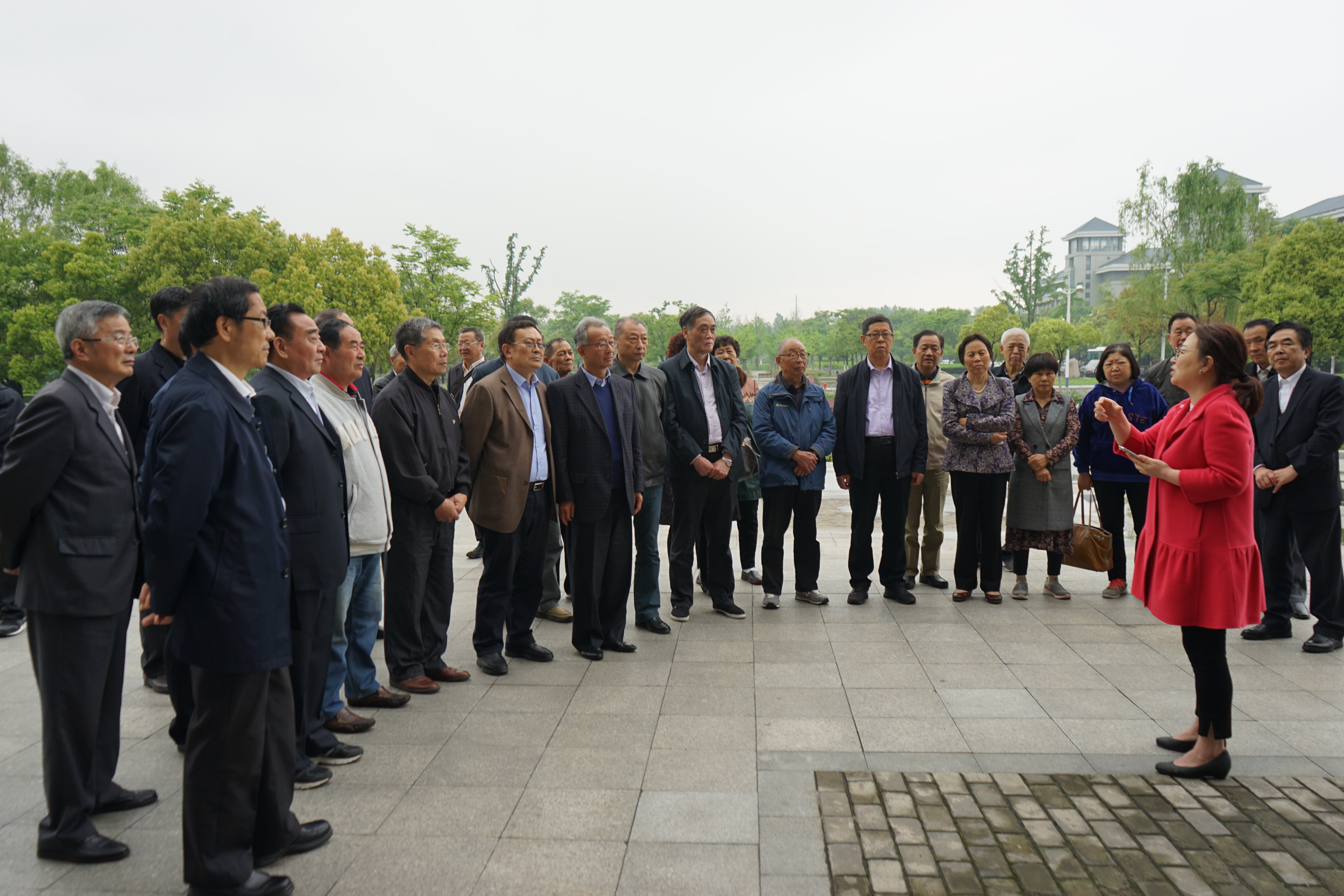 校图书馆老师为员工们讲解图书馆的发展历史