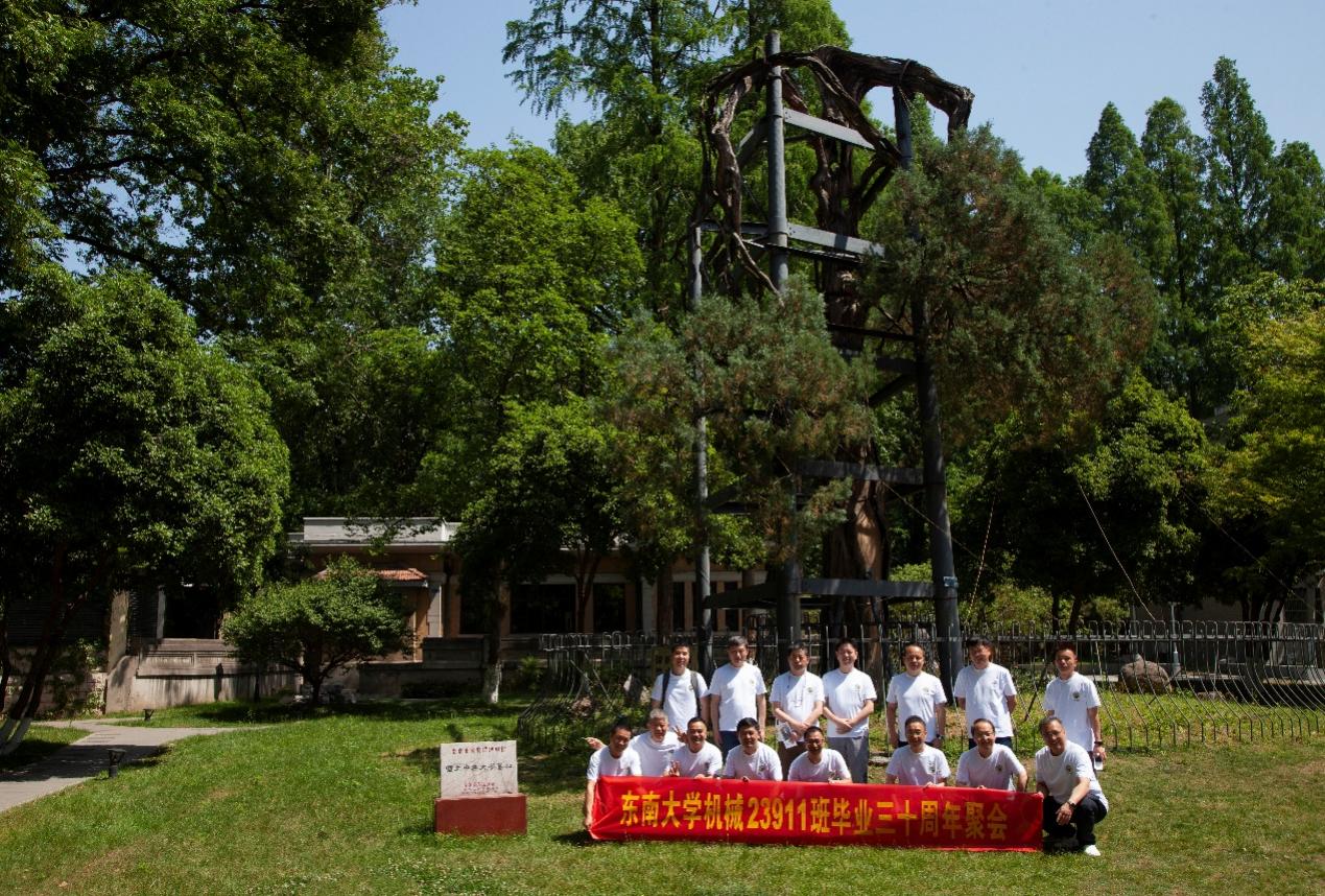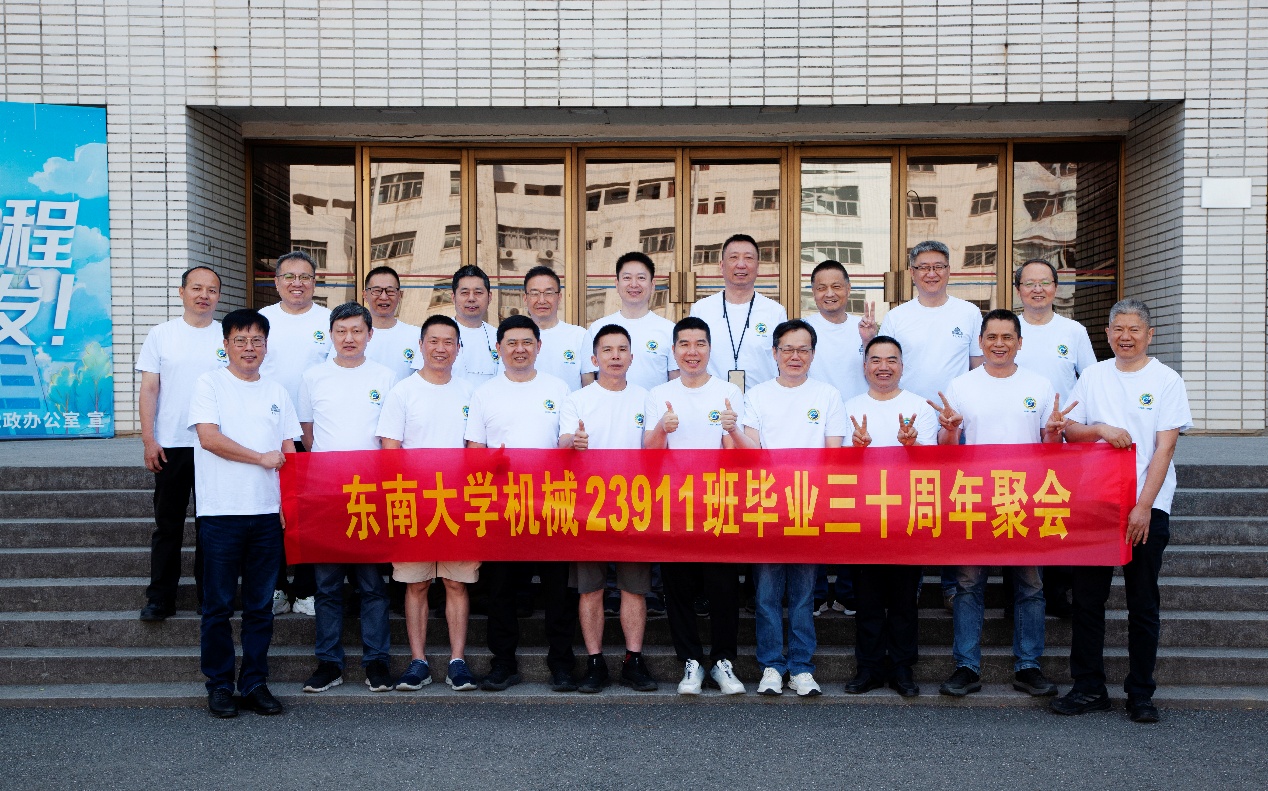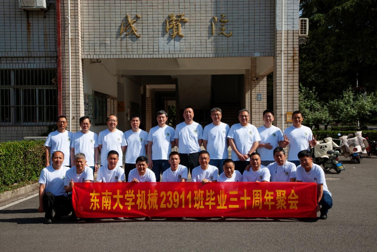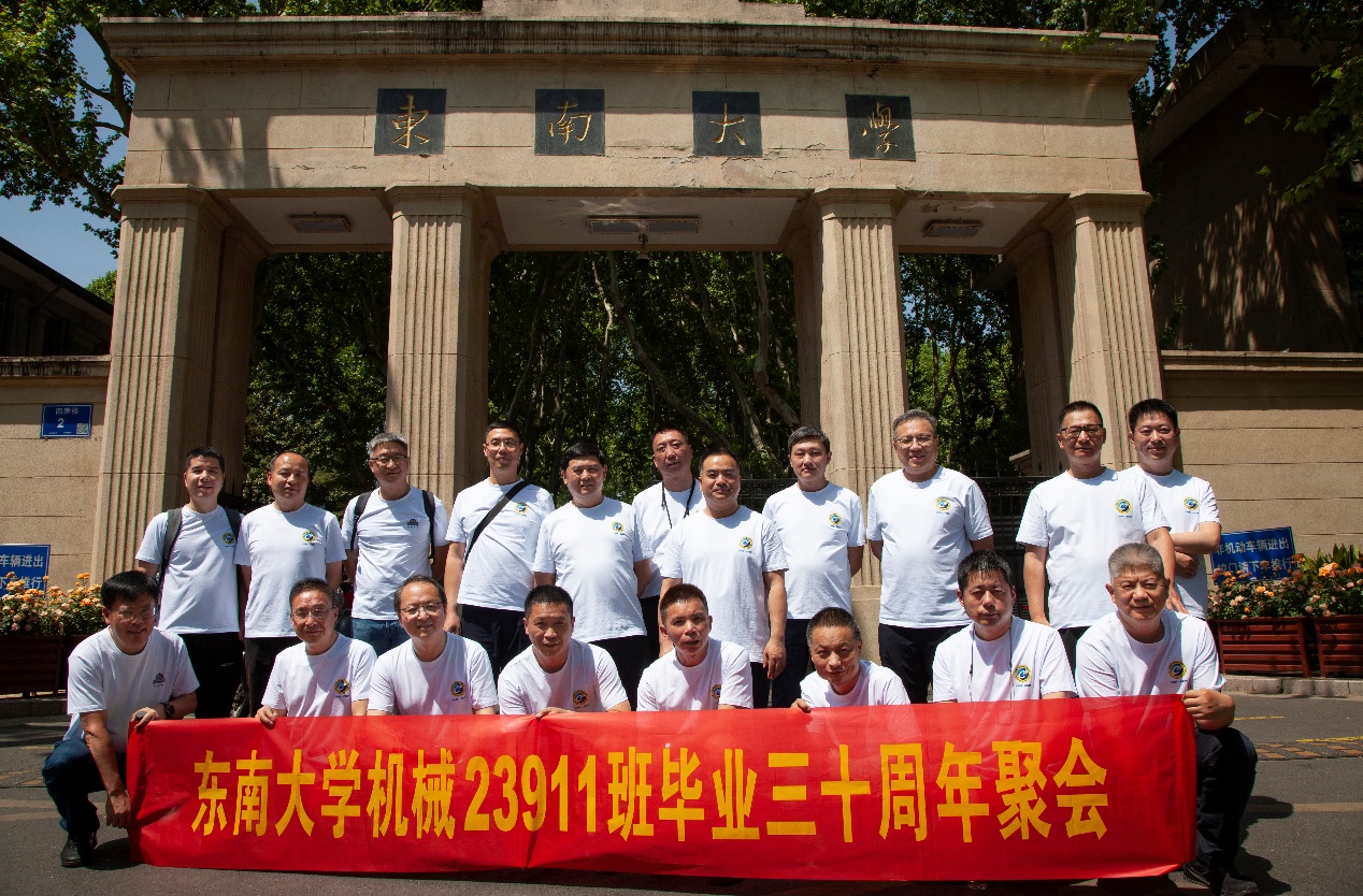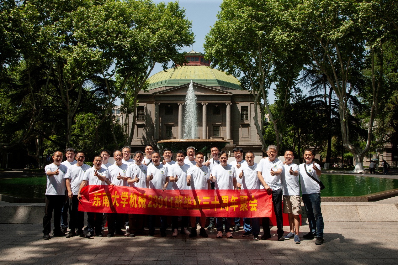 次日早上,员工们共赴历史底蕴深厚的四牌楼校区,回到这个大家共同生活了三年的地方。天公作美,是日校园内花红树绿、群莺乱飞。大家参观了庄重典雅的大礼堂、凝结科学精神的吴健雄纪念馆、充满活力与汗水的体育馆、郁郁葱葱的六朝松,大家在南高院前、六朝松下、老图书馆旁、正南门前,一次次驻足、一次次合影。每一处景致,都唤醒了大家埋藏心底的大学记忆。参观完毕,大家在中山院108教室重开一次久别重逢的班会,同学们轮流分享着毕业三十年来的人生感悟,同忆往事、共展未来,无论是深耕机械行业、成为国之重器的中坚力量,抑或是跨界发展、大家在各行各业各尽其力、努力工作。言语间,大家都流露出对母校栽培的感恩,对同窗情谊的珍视,以及对母校和bv1946伟德官网的无限期盼。班级同学共同做出的一个重要决定:设立“23911教育基金”!同学们承诺,将每年捐赠1万元,连续10年,专项用于资助bv1946伟德官网2名品学兼优的优秀员工。此虽微薄之力、小小善举,却是同学们饮水思源的拳拳之心。大家共同期望,“23911教育基金”的设立,能化作一股源源不断的动力,激励着新一代机械学子奋发图强,勇攀科技高峰,为母校增光添彩!