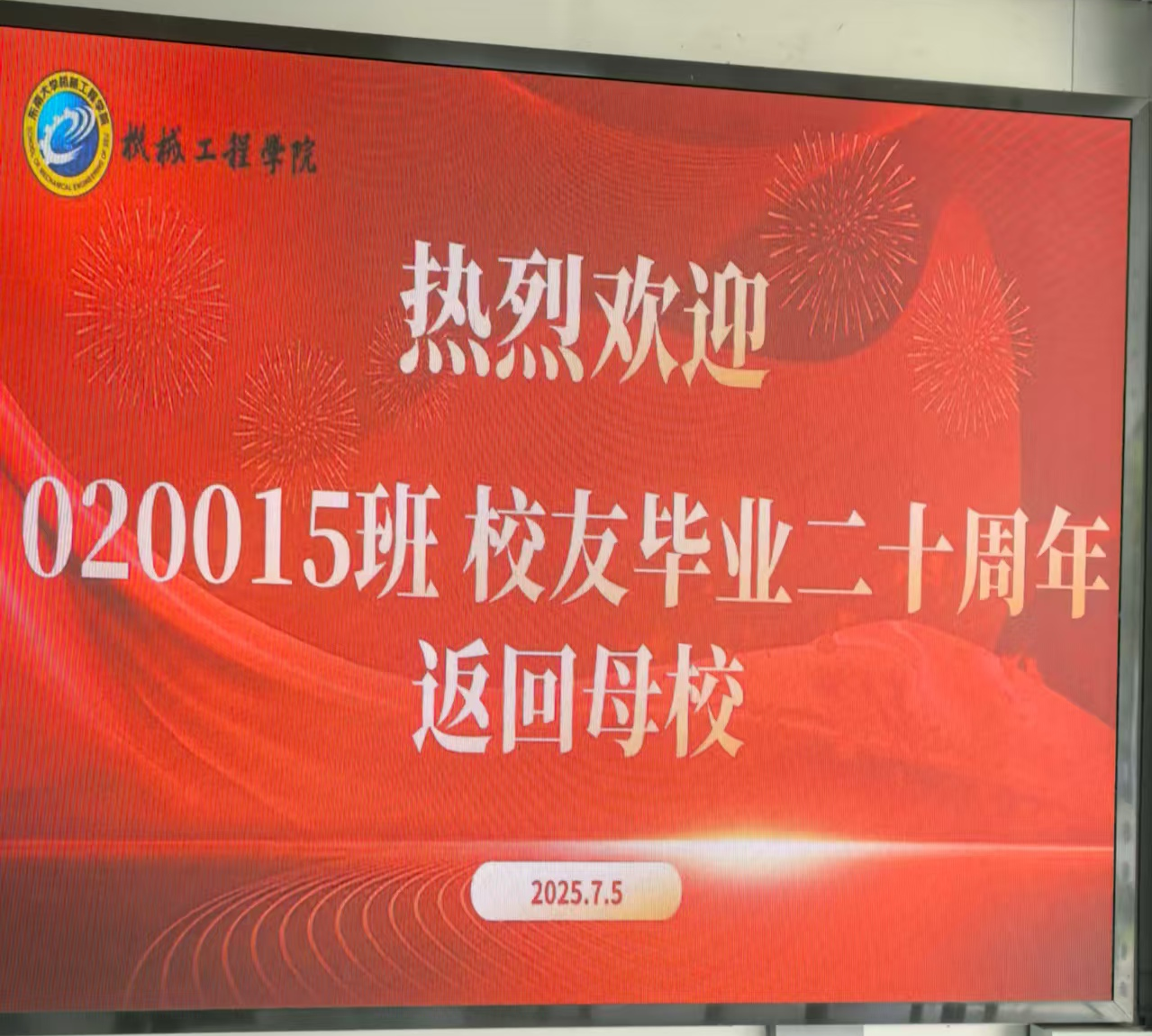 骄阳似火的2025年7月5日,020015班的同学们怀揣着对母校的深情厚谊,重返九龙湖校区,共襄毕业二十周年的盛聚。尽管烈日炎炎,却丝毫未能阻挡大家归心似箭的热情,那份炽热,远超夏日之阳。