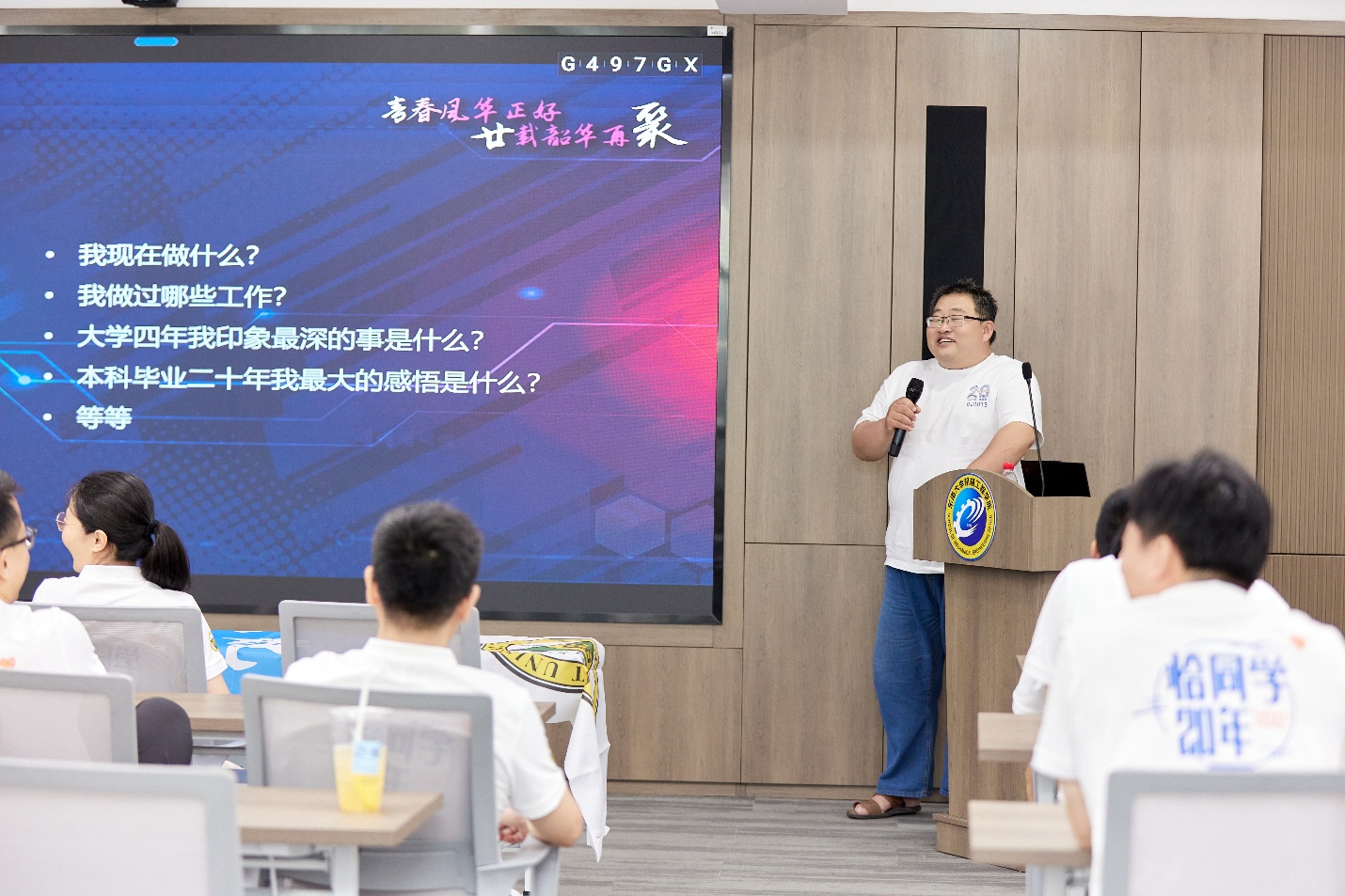 紧接着,每一位同学都轮番上台,分享了自己这二十年来的学习工作经历,回忆了自己老员工活中最难忘的时刻,以及人生的新感悟等。台下的同学们也不时互动,会场里充满了欢声笑语,气氛热烈而温馨。大家仿佛又回到了那个青涩而纯真的年代,共同回味着那段美好的青春时光。